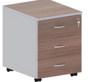 Тумба оснащена тремя выдвижными ящиками. Верхний ящик под ключом.