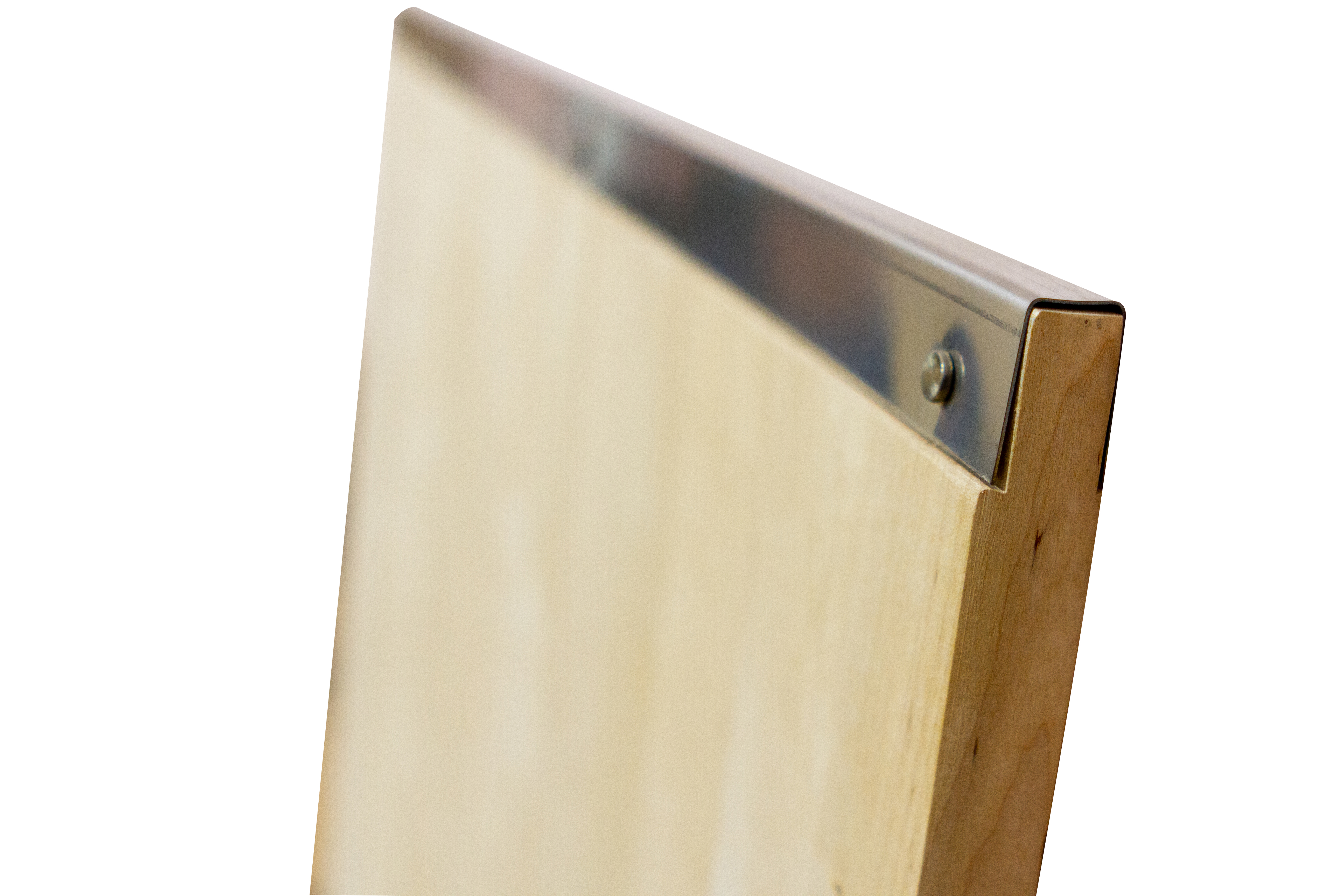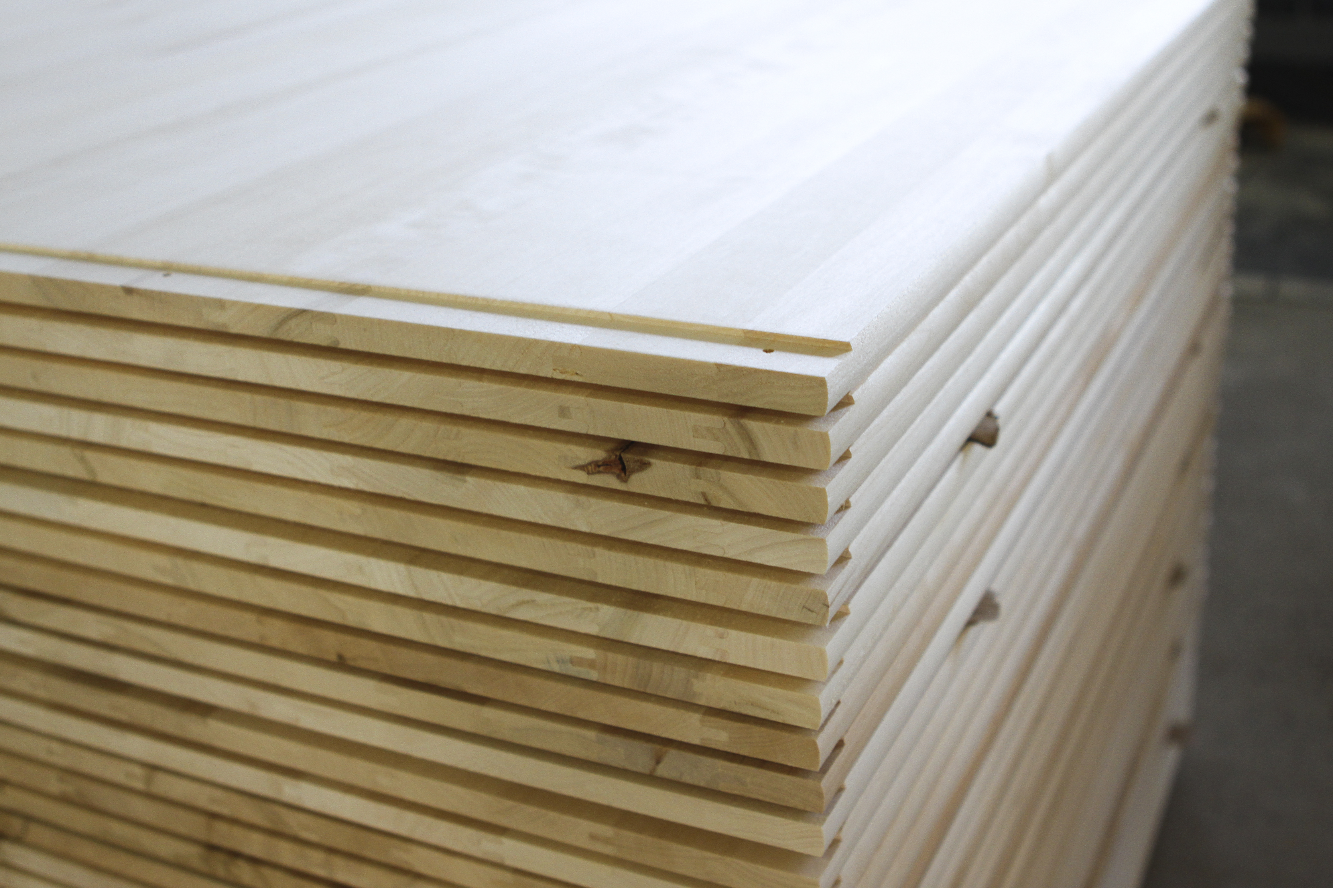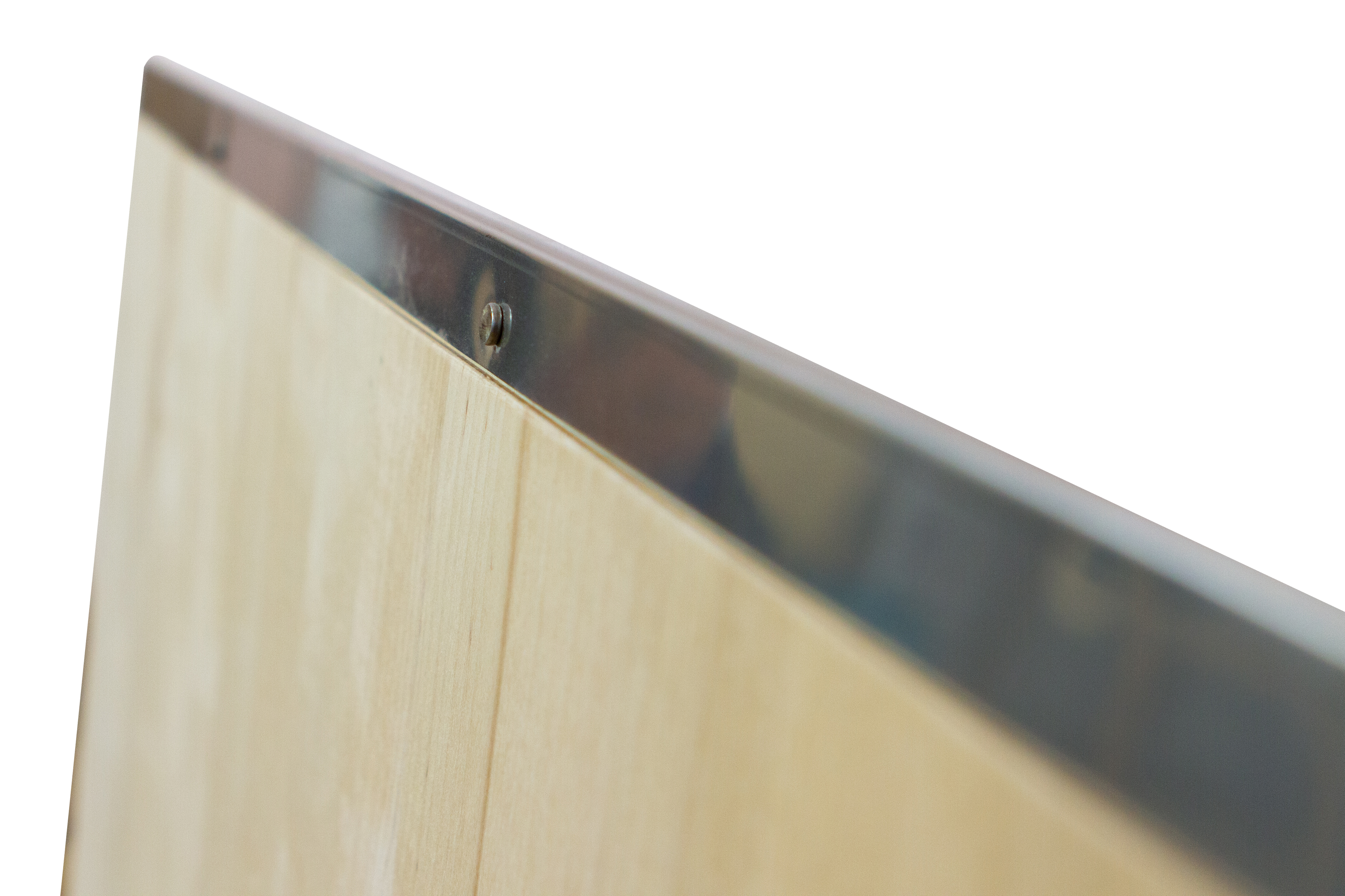 Изготовлена из древесины лиственных пород. Собрана из планок на шпунт-гребень, на влагостойкий клей ПВА D4. На торцовые кромки полки установлен защитный профиль из нержавеющей стали, каждый профиль закреплен на 4 нержавеющие заклепки (марка стали AISI 304L 08X18H10 ГОСТ-10303-80) с потайной головкой.