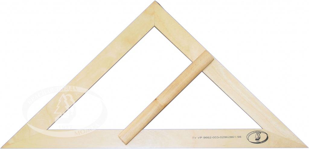 Угольник классный равнобедренный изготовлен из твердолиственных пород древесины. Лакированная поверхность. Незаменимый помощник учителя геометрии, алгебры, физики, имеет ручку для удобства черчения на вертикальной или наклонной школьной доске. Угольник с прямым углом, 45° и 45°. Выпускается с 1975 года. Патент № 37742, патент № 52675